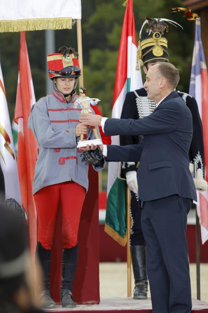 A Herendi alkotás mellett a versenyző átvehette a Nemzeti Vágta Vándordíját is, az 1848-as huszárszablyát, amely a nemzeti hagyományok és a lovas kultúra örökségét őrzi.
